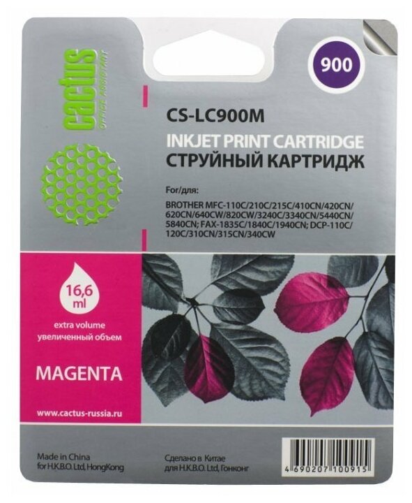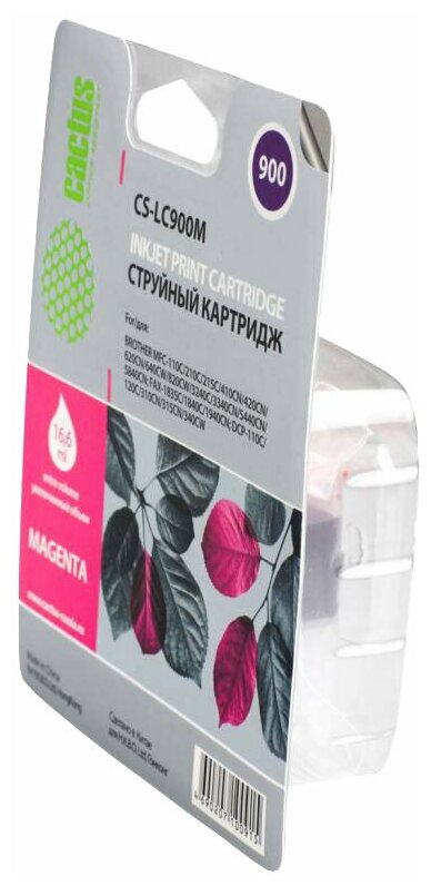 Картридж Cactus CS-LC900M совместимый струйный картридж (Brother LC-900M) 16,6 мл, пурпурный информация: