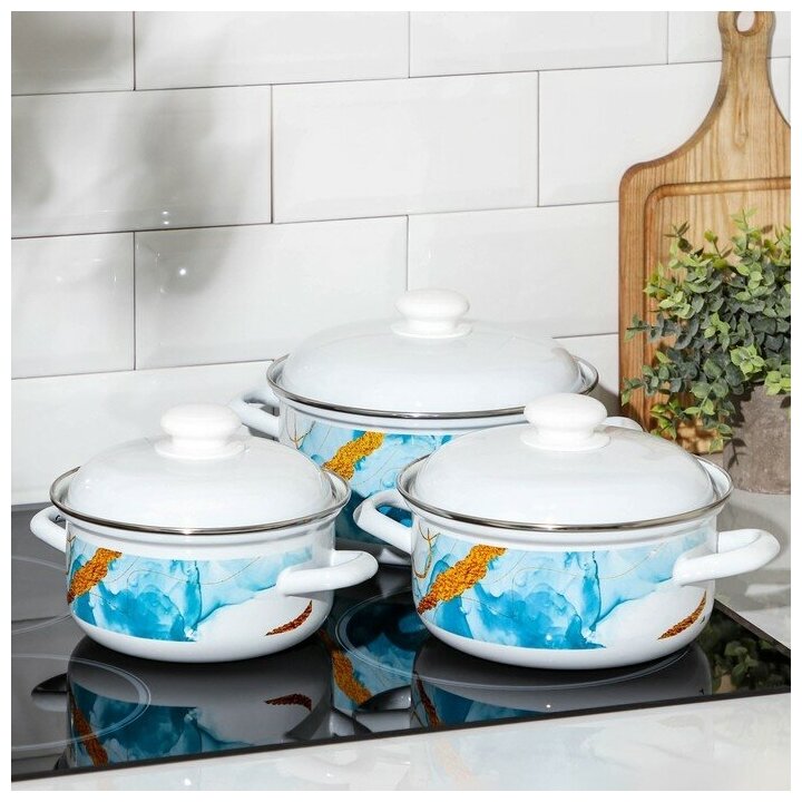 10 цен на Набор кастрюль Доляна Ocean, 3 предмета: 1,5 л, 2 л, 3 л, цвет белый