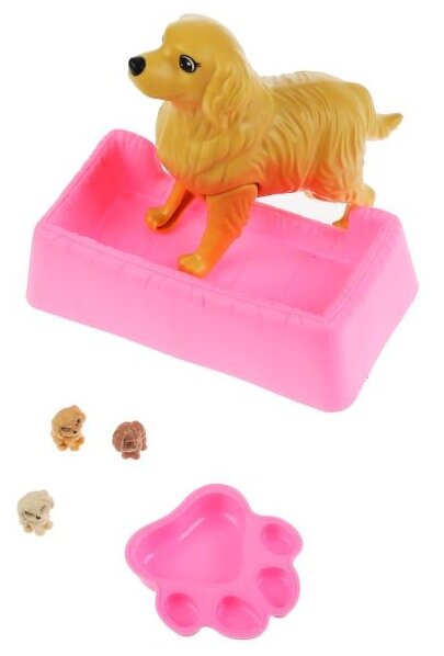 | Комплектация | - кукла; - питомец 4 шт.; - миска; - лежанка для собаки. |