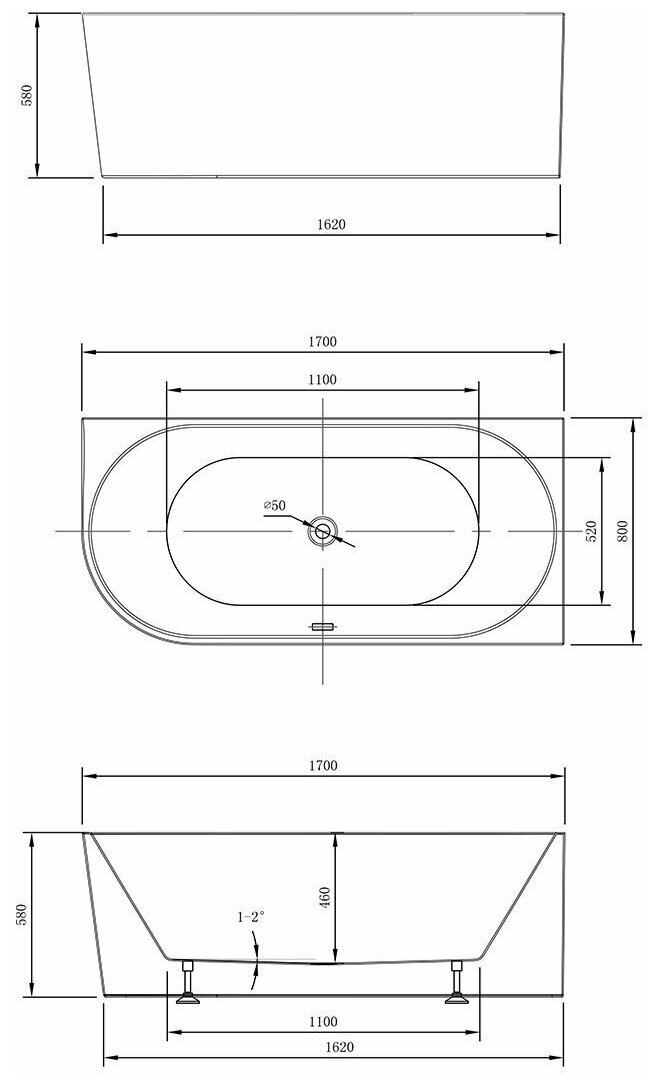 Ванна акриловая Vincea VBT-402-1700R, 1700*800*580, цвет белый, правая, слив-перелив в комплекте информация: