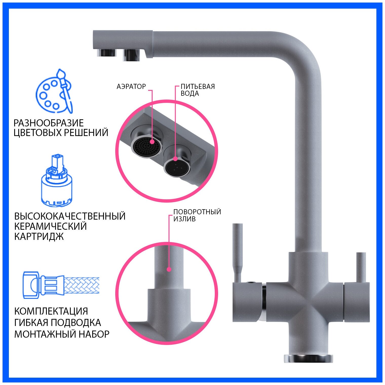 Отзывы на Смеситель для кухни 40к MIXLINE ML-GS10 (342) графит с вых. для питьевого фильтра