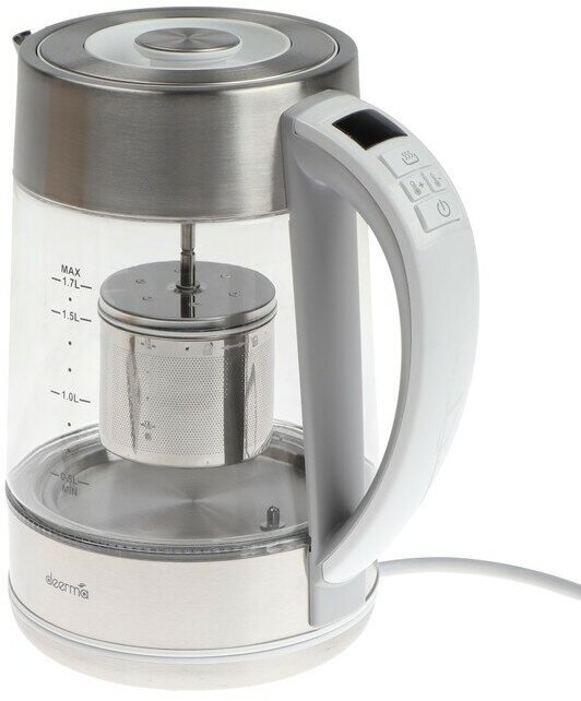 Чайник электрический DEM-SH50W, стекло, 1.7 л, 2200 Вт, регулировка t°, серебристый