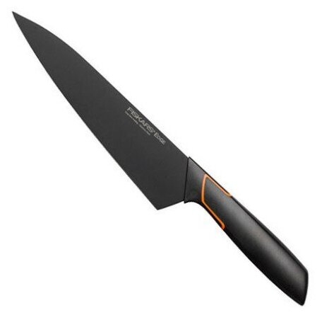 Нож кухонный Fiskars Edge, разделочный, 190мм, заточка прямая, стальной, черный/оранжевый [1003094]