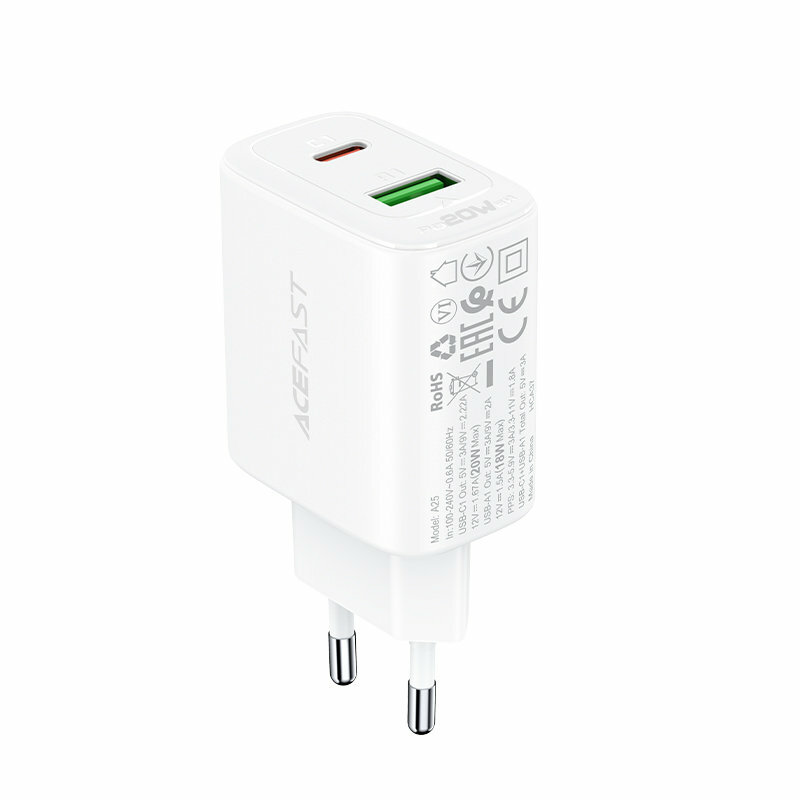 Сетевое зарядное устройство Acefast A25 USB Type-C / USB 20W Wall Charger белое (AF-A25-WH) информация: