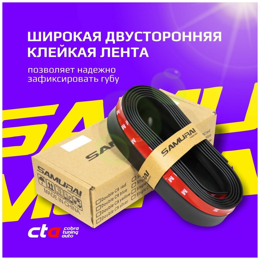 Универсальная резиновая губа SAMURAI на бампер автомобиля, черная. информация: