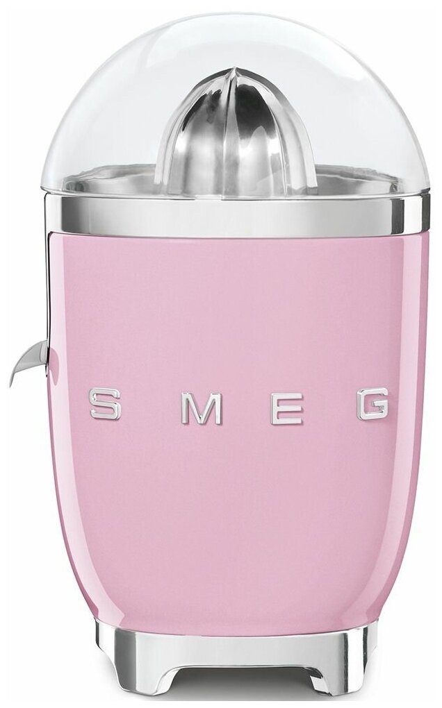 SMEG, Электрическая соковыжималка для цитрусовых CJF11PKEU, каплезащитный носик и универсальный конус, нескользящие ножки, сетчатый фильтр из нержавеющей стали и пресс-конус, 70 Вт, розовый