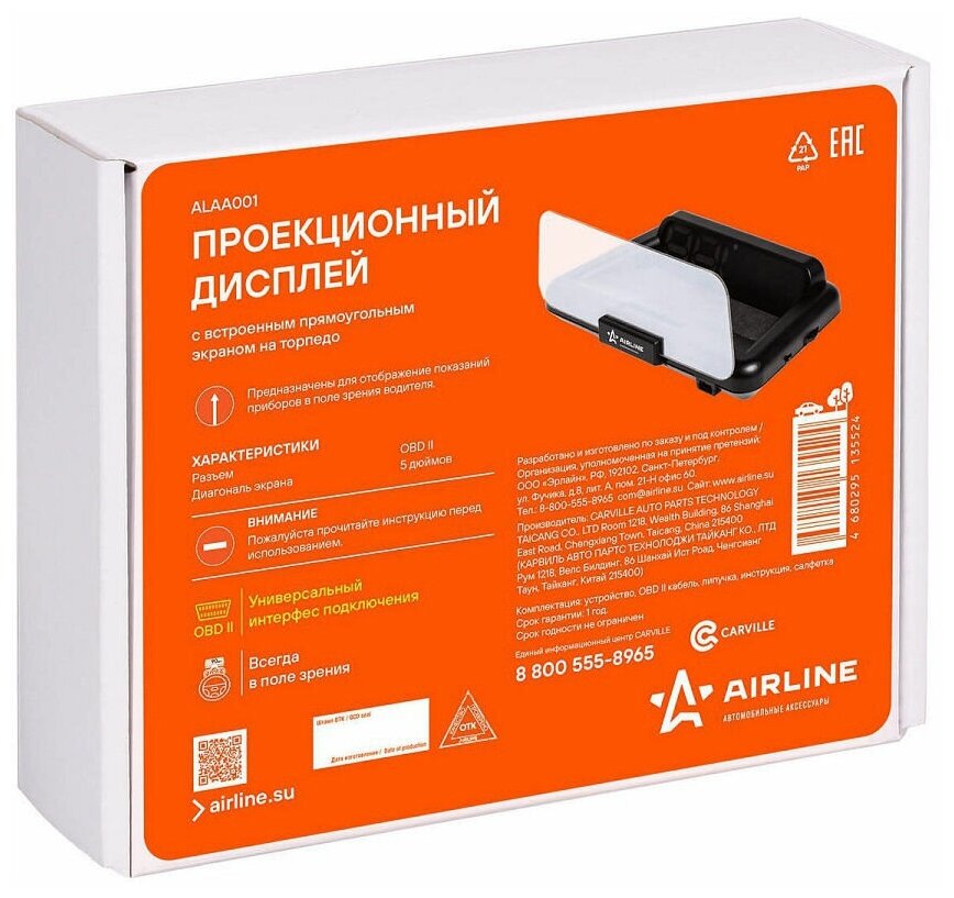 Отзывы на AIRLINE ALAA001 Дисплей проекционный HUD, спидометр с встроенным прямоугольным экраном