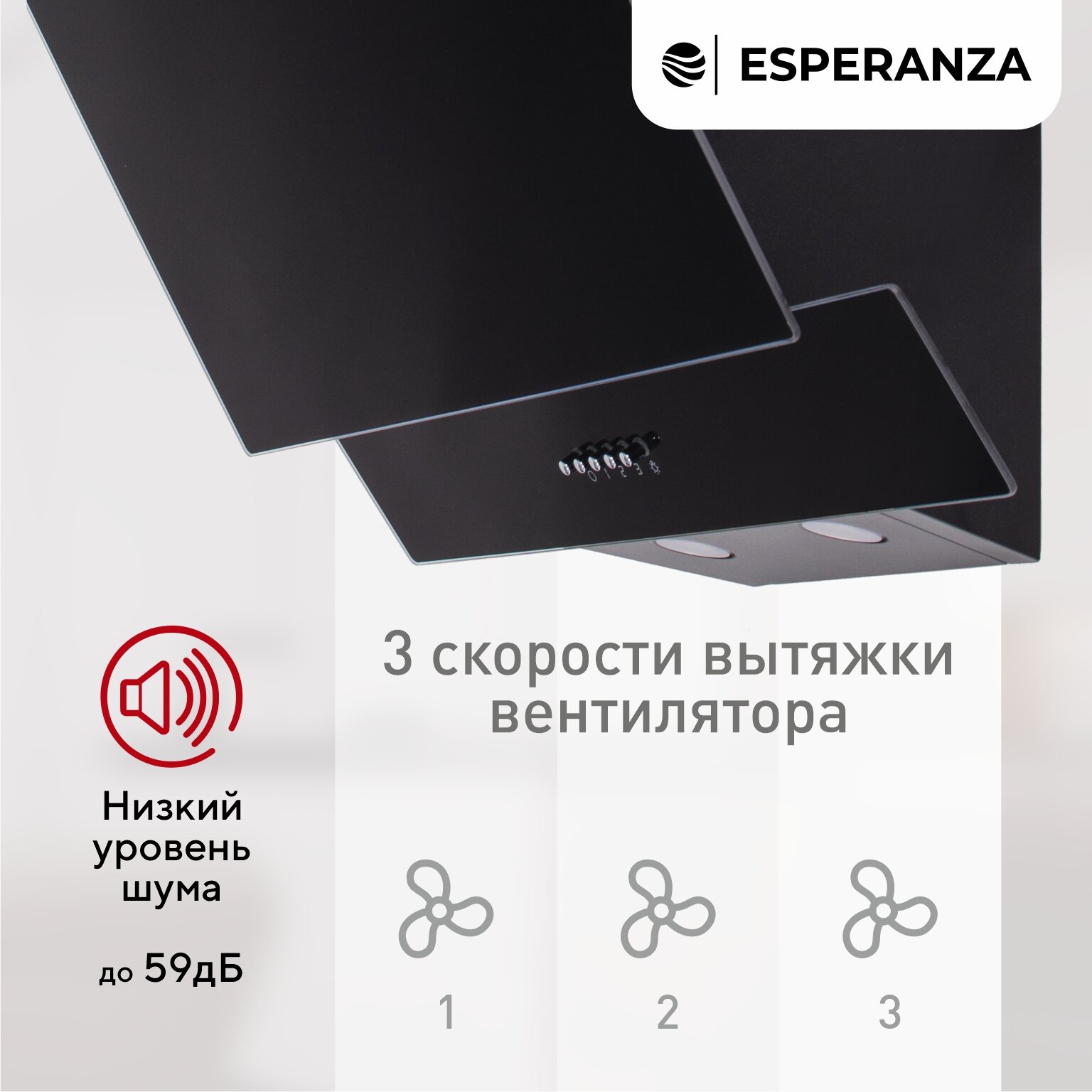 Наклонная вытяжка 60 см ESPERANZA RHA60G06 В, цвет черный информация: