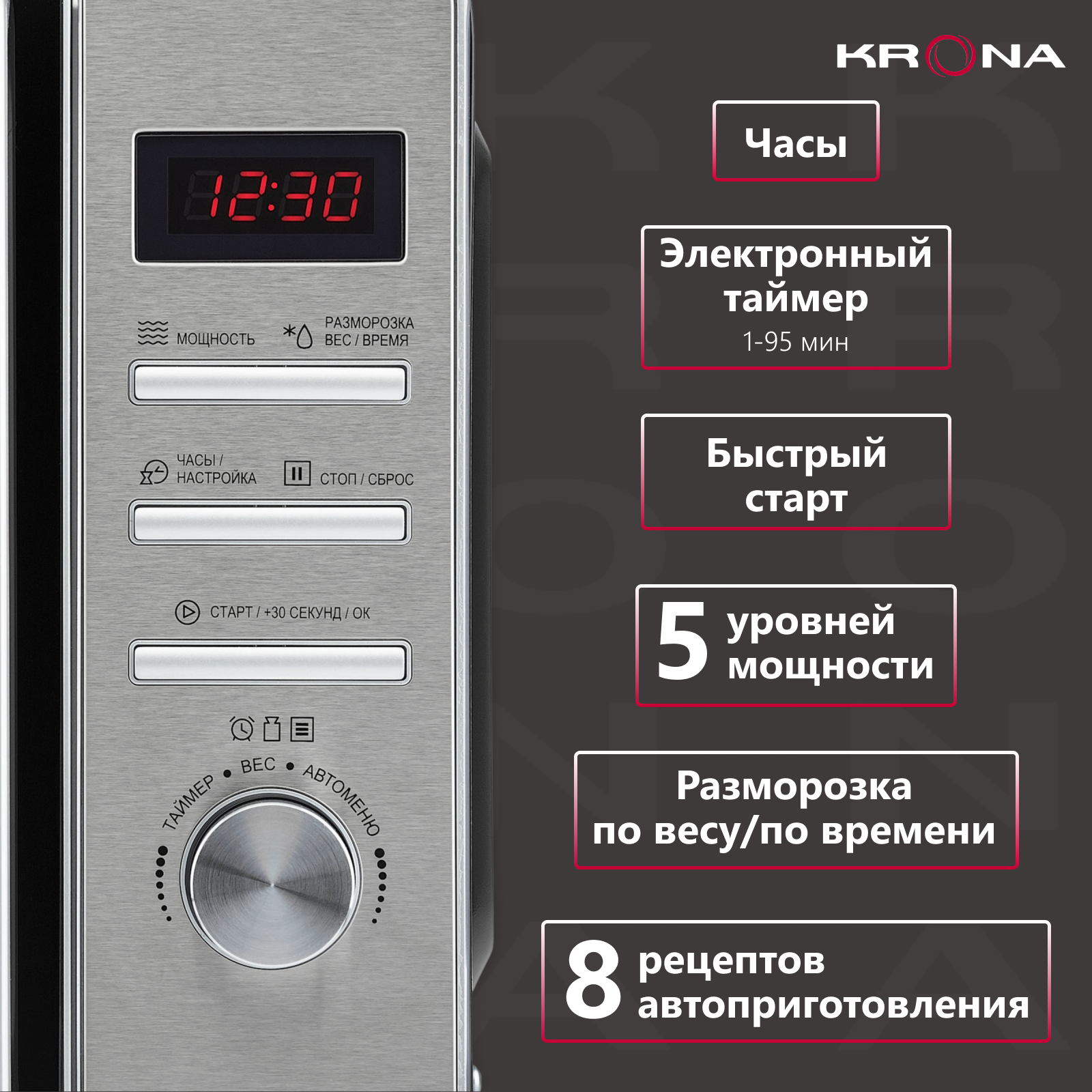 10 цен на Микроволновая печь KRONA QUANTUM 44 BL/IX черная