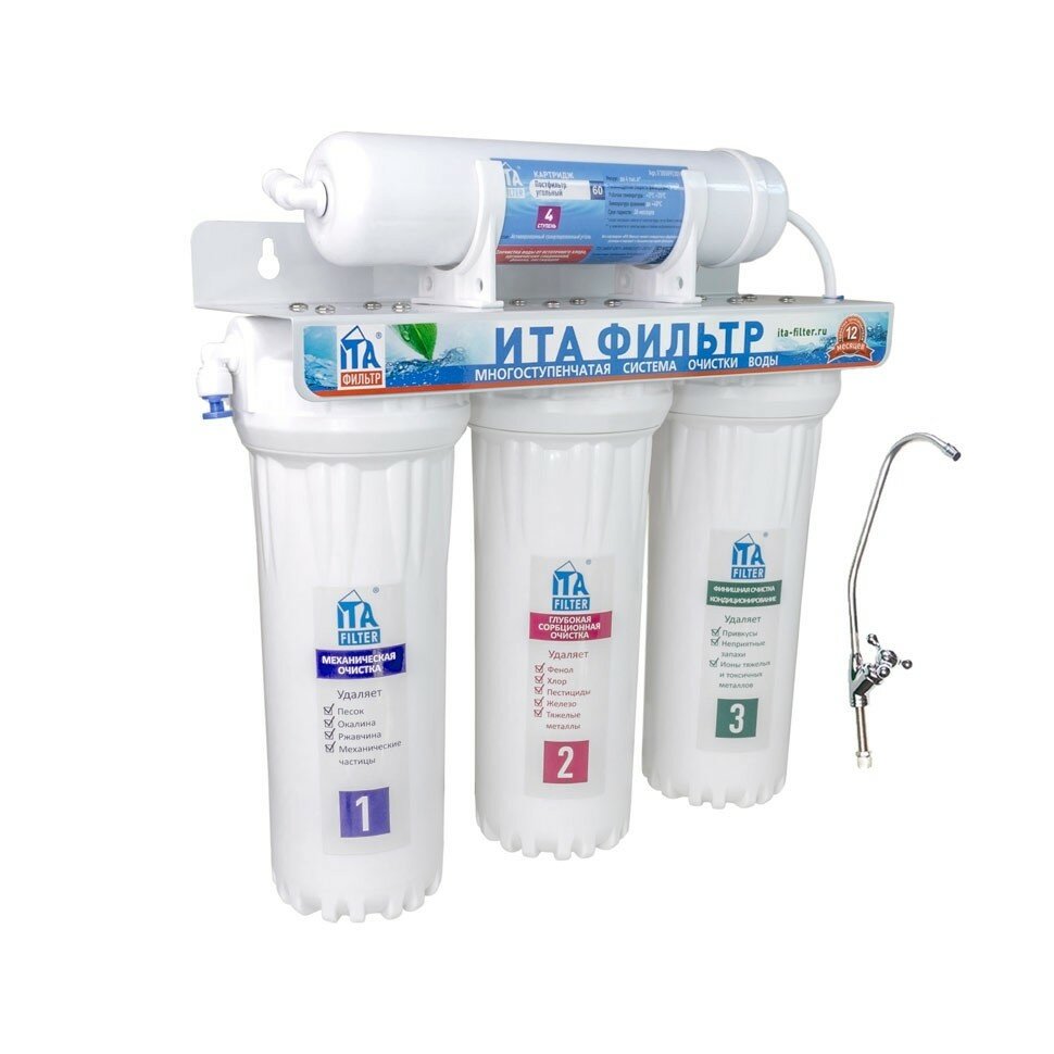 10 цен на Питьевая система онега 4-СТ Антибактериальный (4-х ступенчатый проточный фильтр для очистки воды, под мойку)