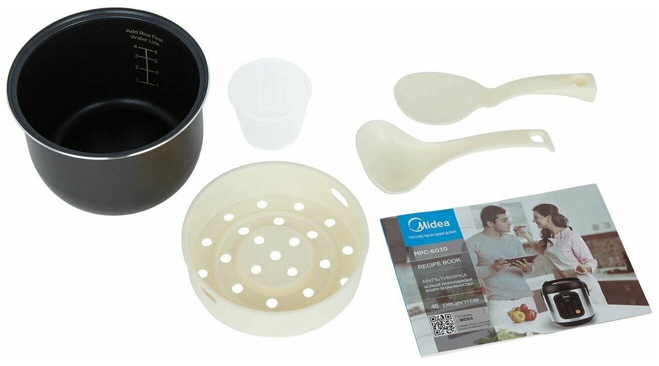| Комплектация | влагосборник, книга рецептов, контейнер-пароварка, мерный стакан, стакан для йогурта, плоская ложка, столовая ложка для супа |
