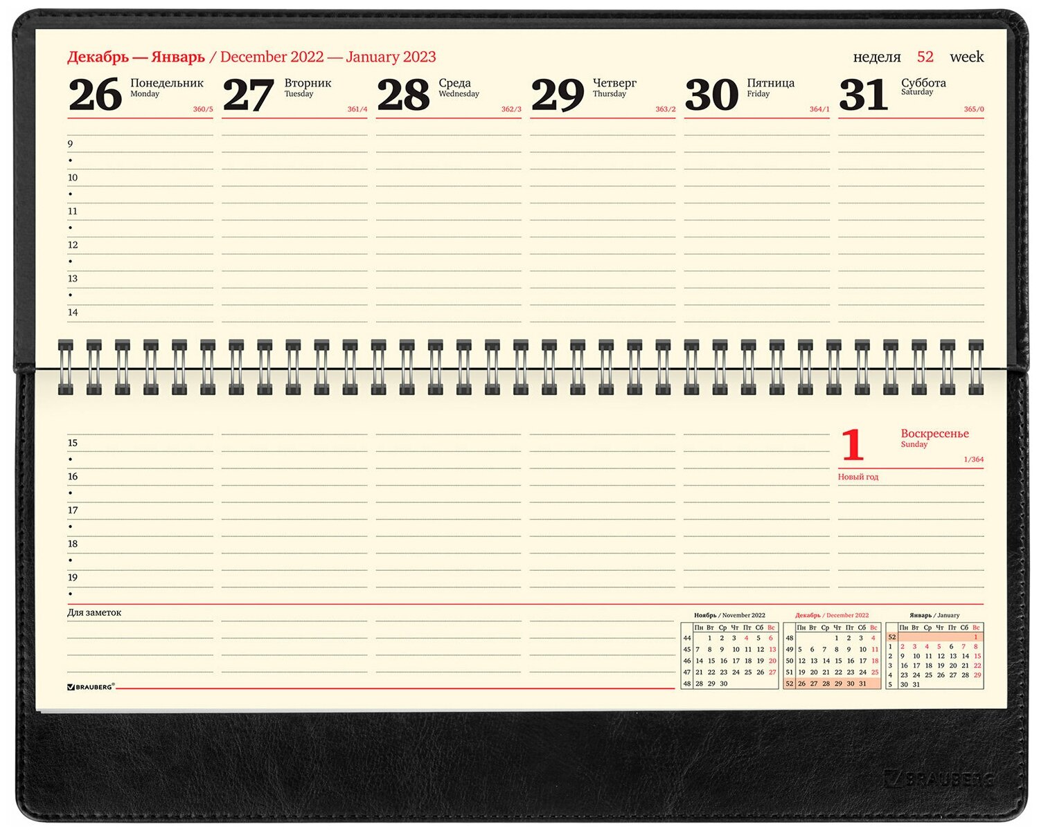 10 цен на Планинг датированный Brauberg 2023 год, 305х140 мм, под кожу, черный (113994)