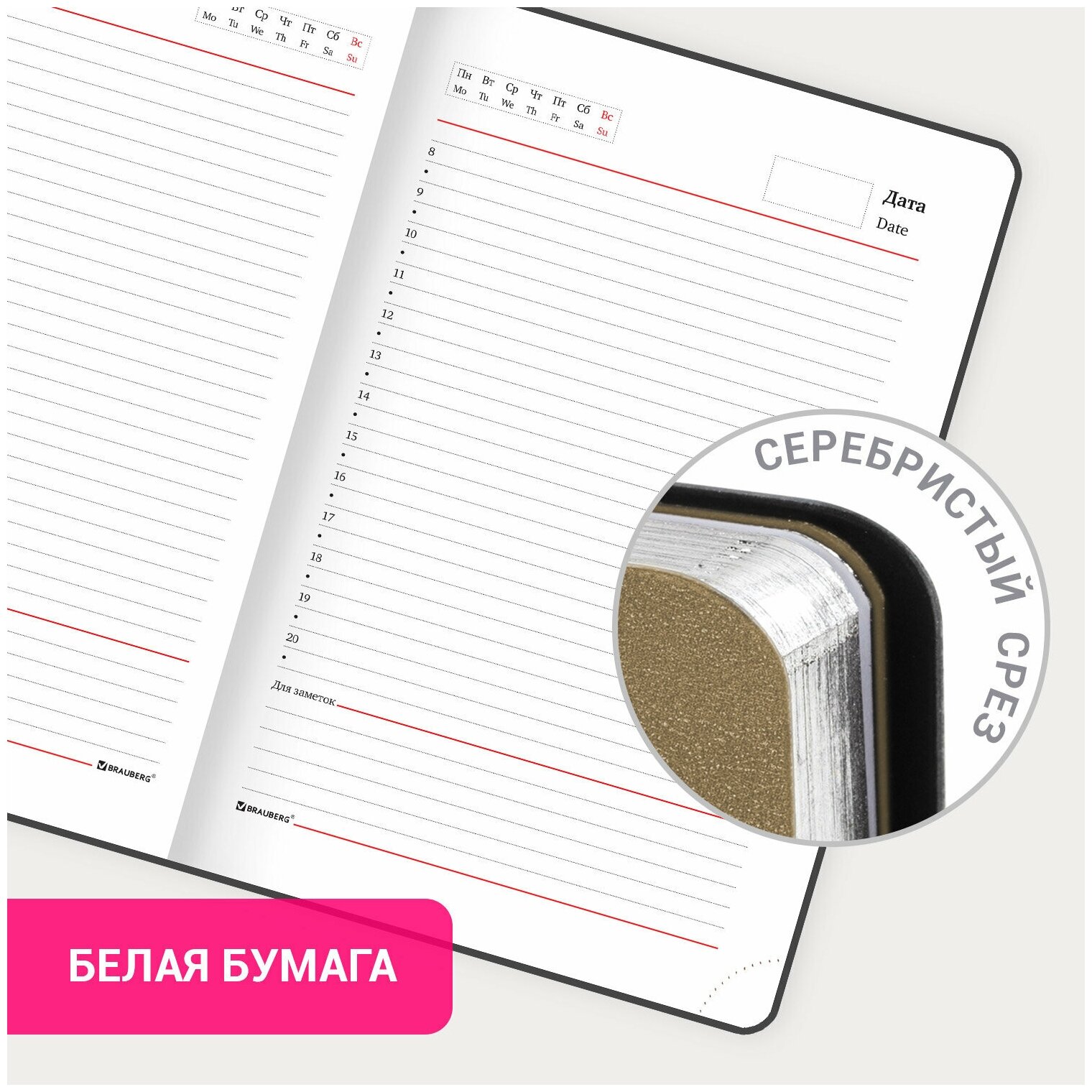 Ежедневник Brauberg Metallic, недатированный, А5, 138х213 мм, под кожу, 136 л., гибкий, черный