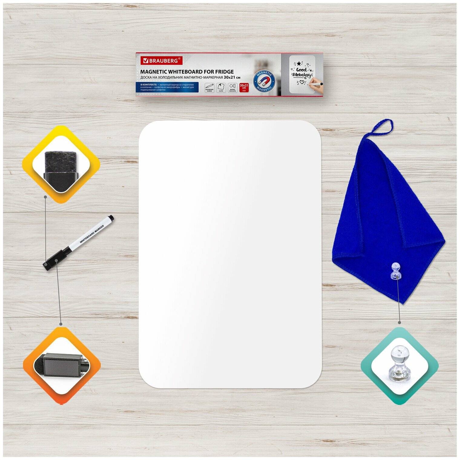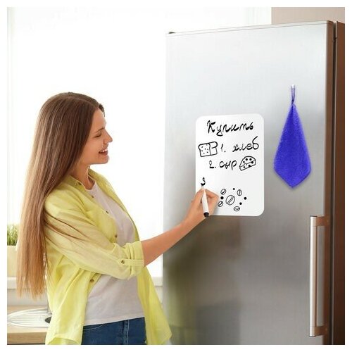 Доска на холодильник магнитно-маркерная 30х21 см с маркером, магнитом и салфеткой, BRAUBERG