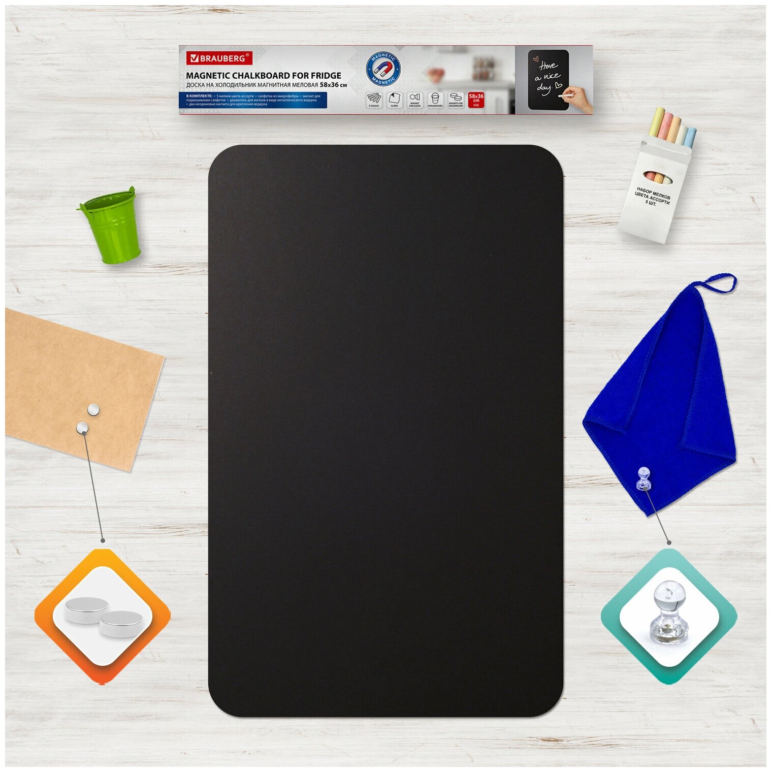 Доска на холодильник магнитно-меловая 58х36 см с мелками магнитом и салфеткой BRAUBERG, 1 шт