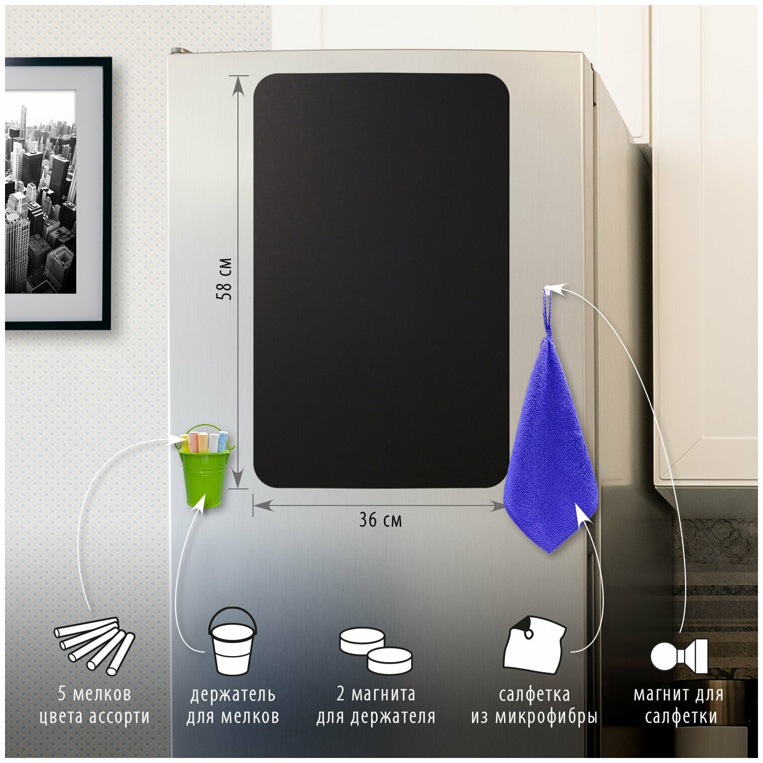 Доска на холодильник магнитно-меловая 58х36 см с мелками, магнитом и салфеткой, BRAUBERG, 237845 информация: