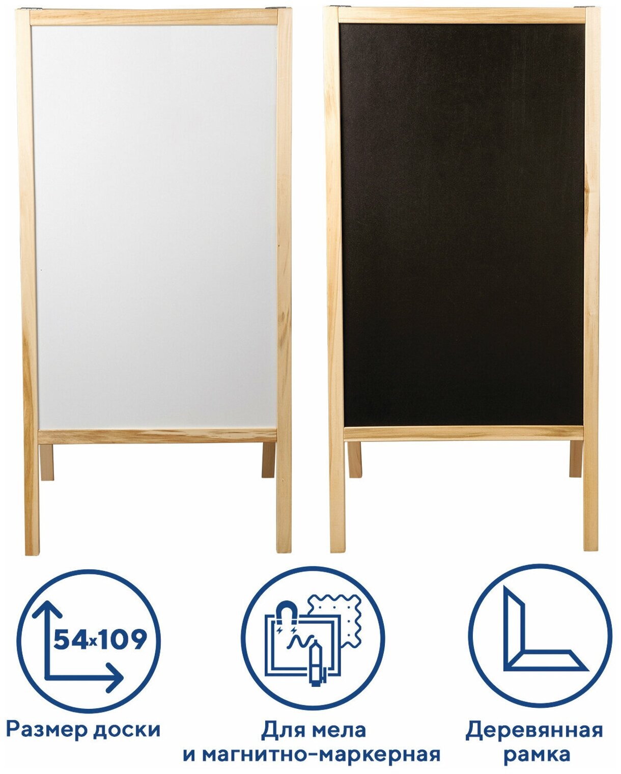 10 цен на Доска-штендер двусторонняя для мела и магнитно-маркерная (54х109 cм), черная/белая, STAFF, 236889