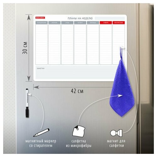 Планинг на холодильник магнитный на неделю, 42х30см с маркером и салфеткой, BRAUBERG, 237850 информация: