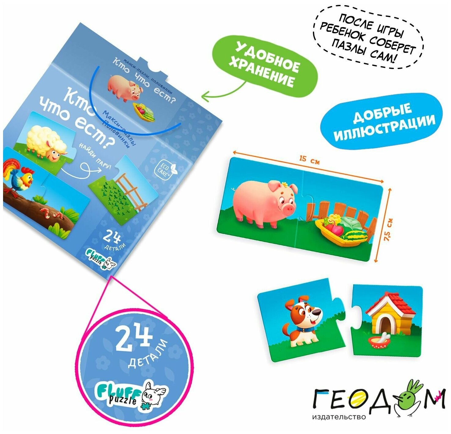 Макси-пазлы. Половинки. Кто что ест? 24 детали. Геодом