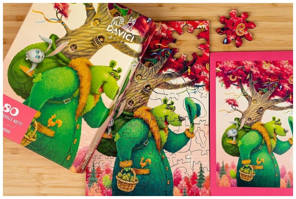 Отзывы на Деревянные пазлы DAVICI детям Зеленый медведь 25х17 см, 80 деталей Детская коллекция Начальный уровень