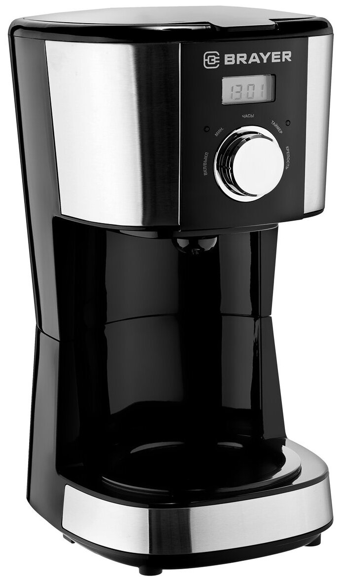Кофеварка капельная BRAYER BR1122, 900 Вт, LCD-дисплей, 1,5 л, черный/серебристый
