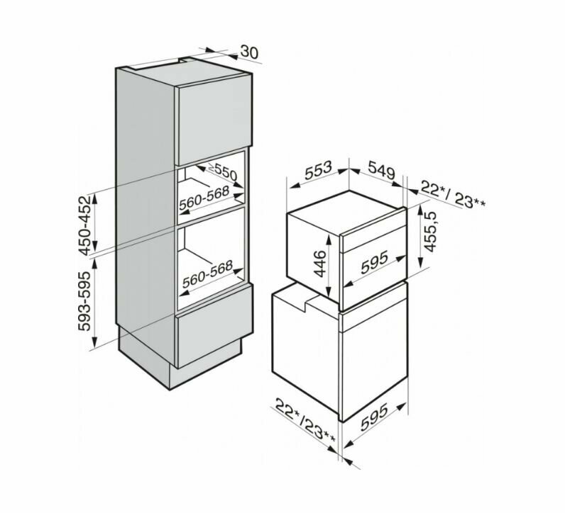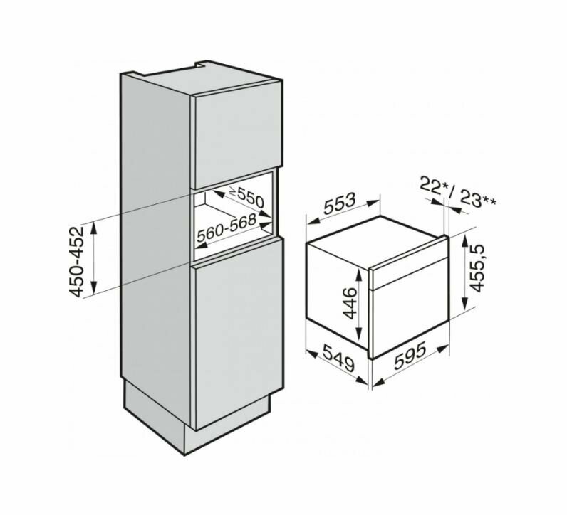 | Дополнительно | габариты ниши для встраивания (см): ширина 56 - 56.8, высота 45 - 45.2, глубина 55 |