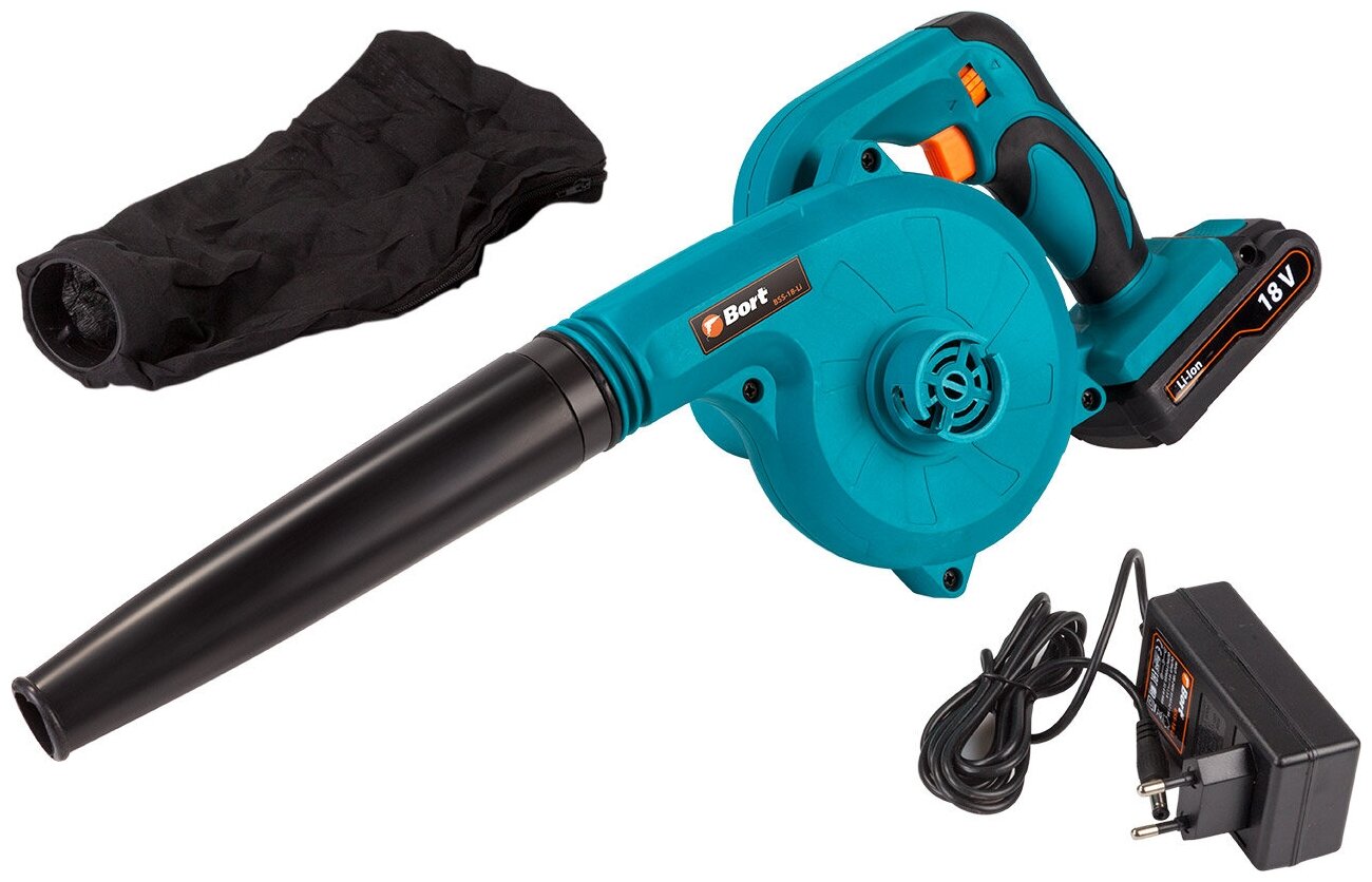 Воздуходувка аккумуляторная Bort BSS-18-LI, 18 В, 0-30 л/сек, 1.3 Ач, Li-Ion, функция выдува 48144