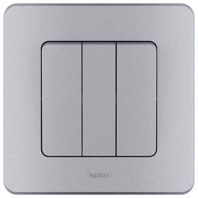 Выключатель трехклавишный 10AX-250В, (Алюминий), Legrand INSPIRIA (комплект 7шт) 4 583 ₽