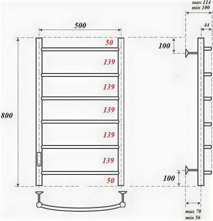 Полотенцесушитель электрический 800x532 диммер слева Point Афина П6 PN04758 16 144 ₽