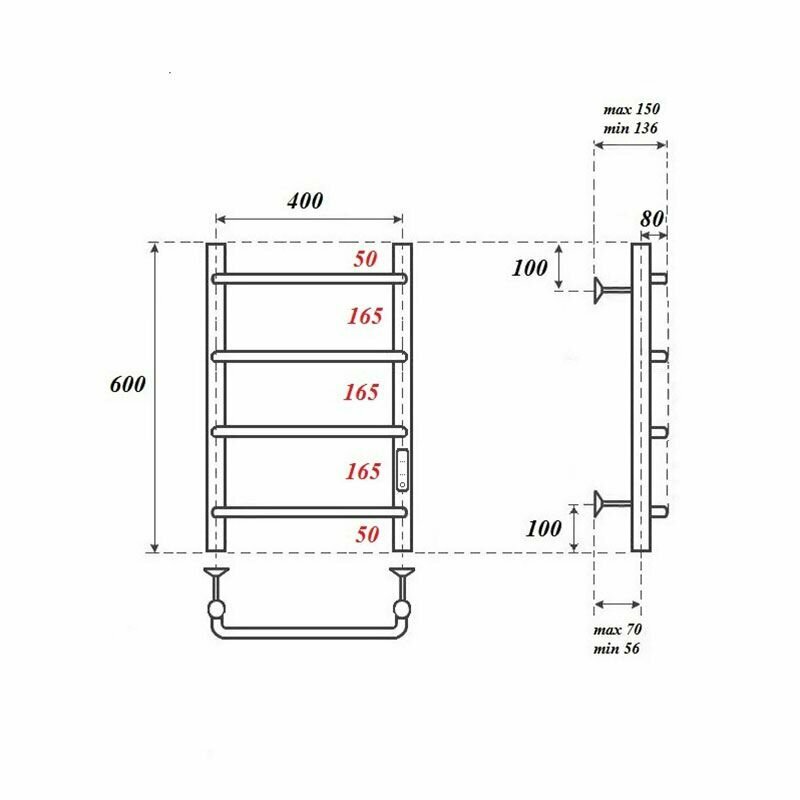 Point Полотенцесушитель электрический 600х432 диммер справа Point Серия 08 П4 PN08846B