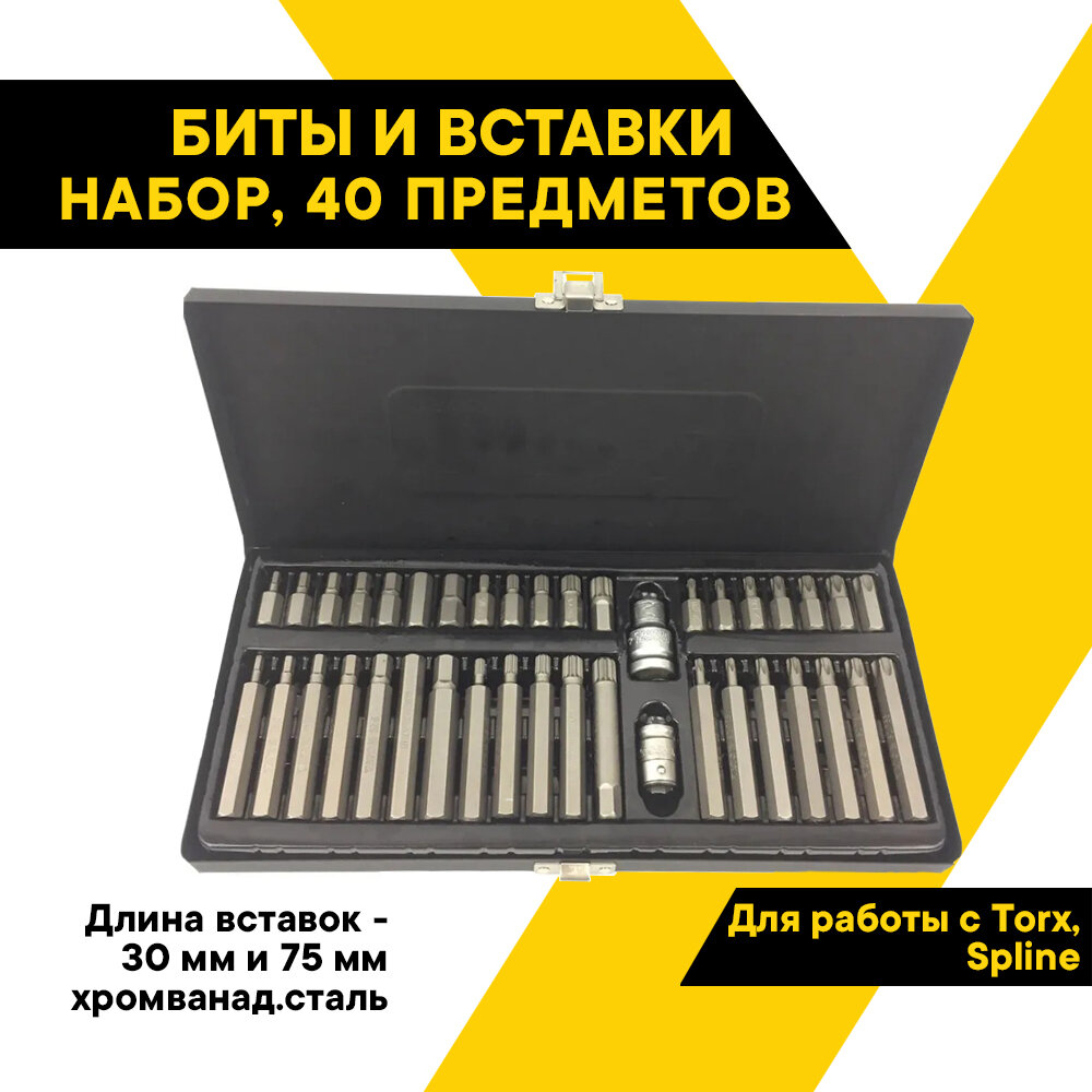 Набор бит 40 пр. Hex/Torx/Spline L=30 мм/L=75 мм АвтоДело автодело 40640 | цена за 1 шт