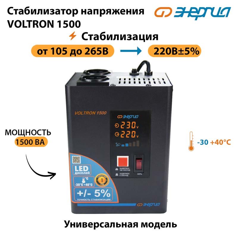 Однофазный стабилизатор напряжения Энергия Voltron 1500 информация: