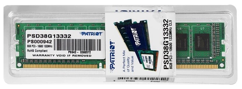 10 цен на Модуль памяти DDR3 8Gb 1333MHz Patriot 1.5v (psd38g13332)
