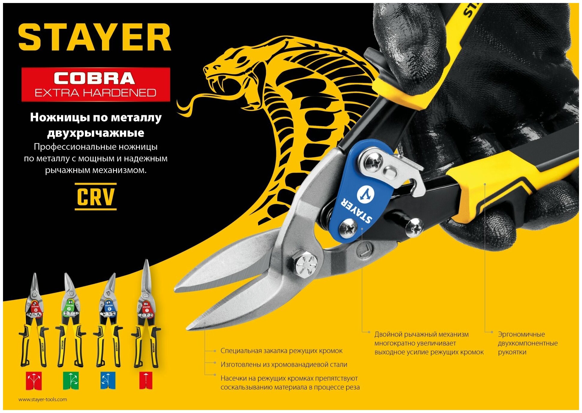 STAYER COBRA Прямые удлинённые ножницы по металлу, 290 мм