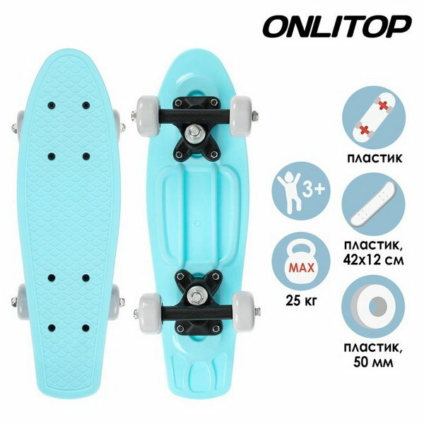 ONLITOP Пенниборд 42 х 12 см, колёса PVC 50 мм, пластиковая подвеска, цвет голубой