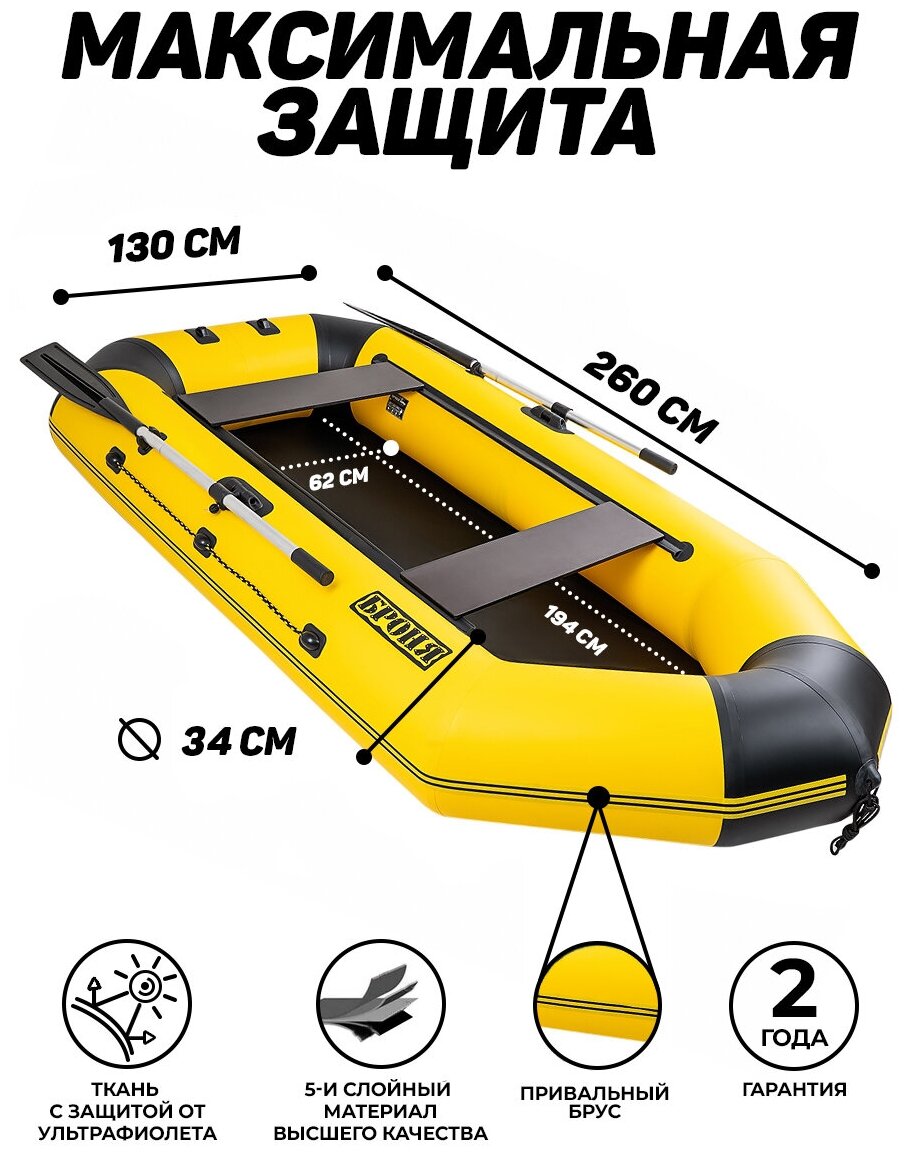 Надувная лодка ПВХ с усилением Броня-260М желтый-черный информация: