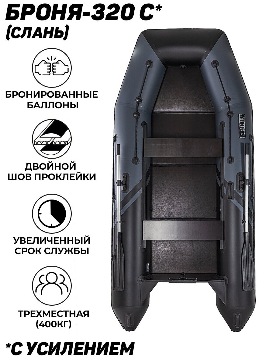 Лодка пвх под мотор Броня 320С (слань в комплекте) с усилением графит/чёрный информация: