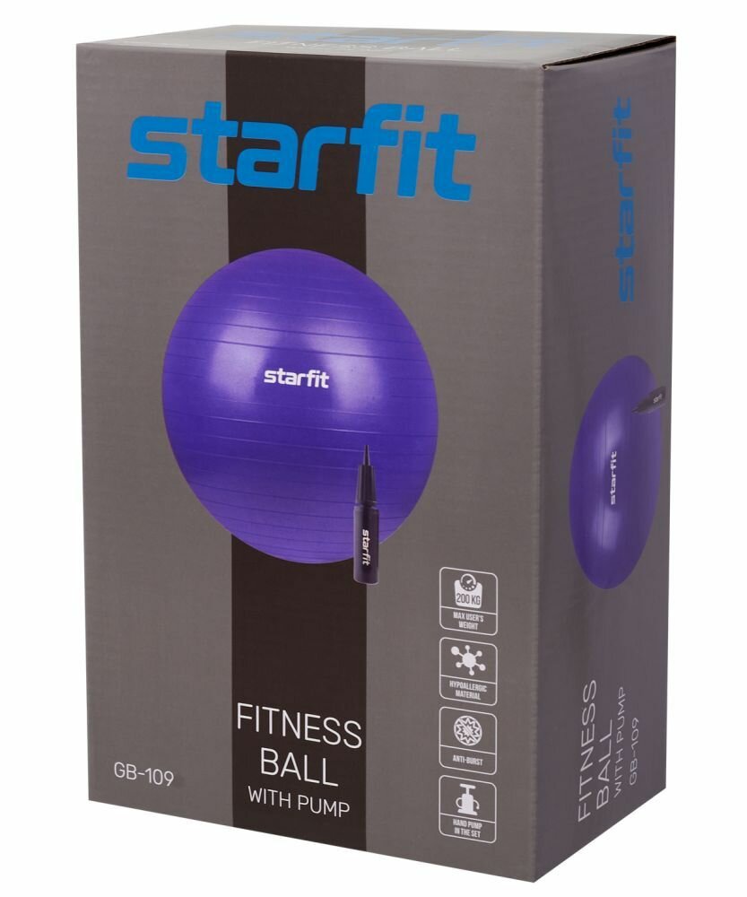 Фитбол STARFIT GB-109 75 см, 1200 гр, антивзрыв, с ручным насосом, фиолетовый 1 449 ₽