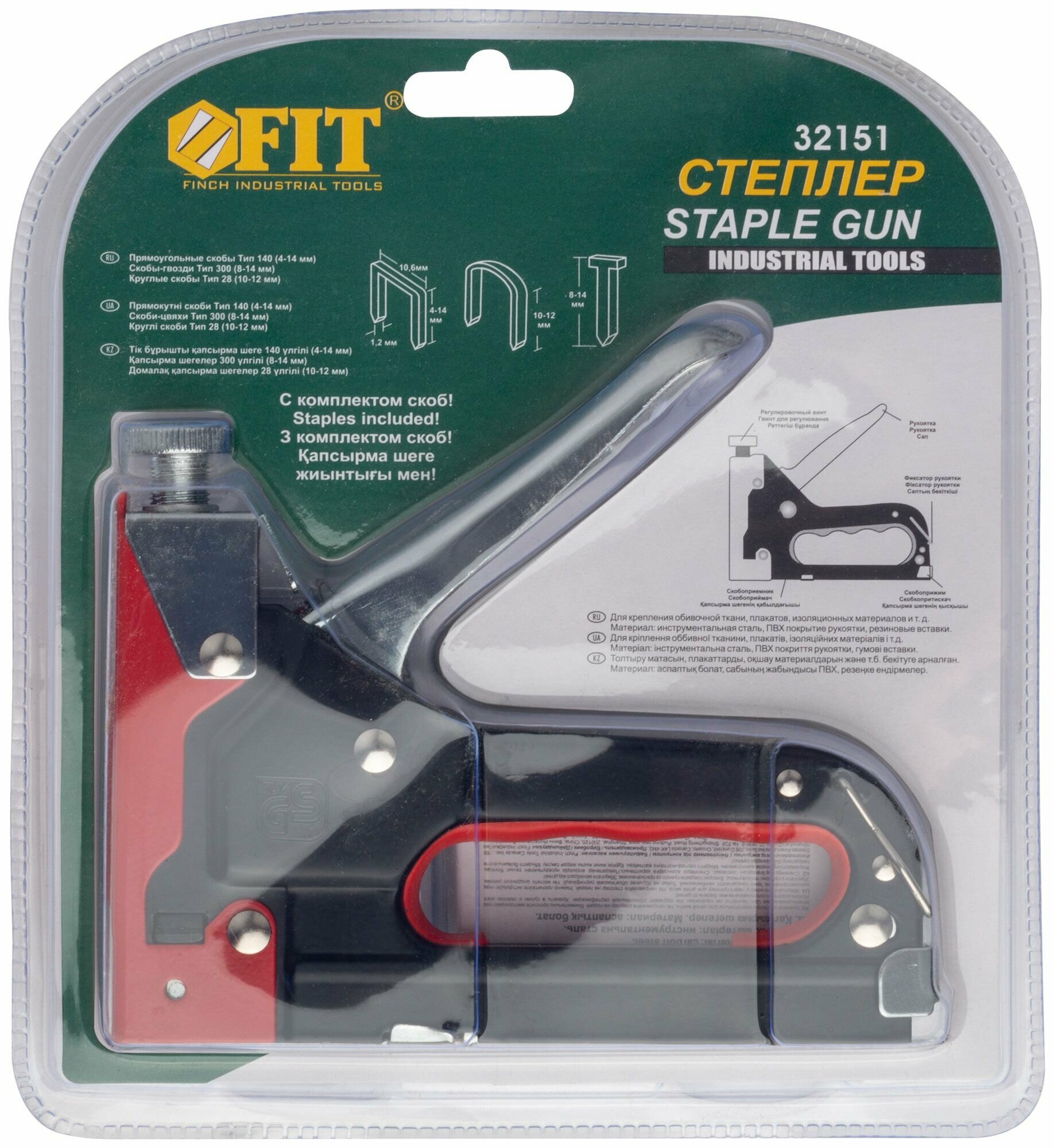 Степлер для широких скоб 3-в-1, "тип 140" 4-14 мм, "тип 28", "тип 300", с регулир. удара, метал. корпус, FIT 32151 (1 шт.)