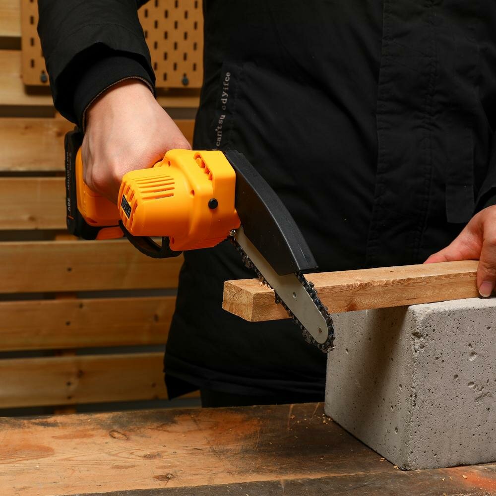 Цепная мини пила аккумуляторная ручная садовая, Портативная цепная аккумуляторная бензопила