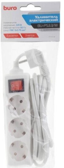 Сетевой удлинитель Buro BU-PS3.3/W 3м (3 розетки) белый (пакет ПЭ) информация: