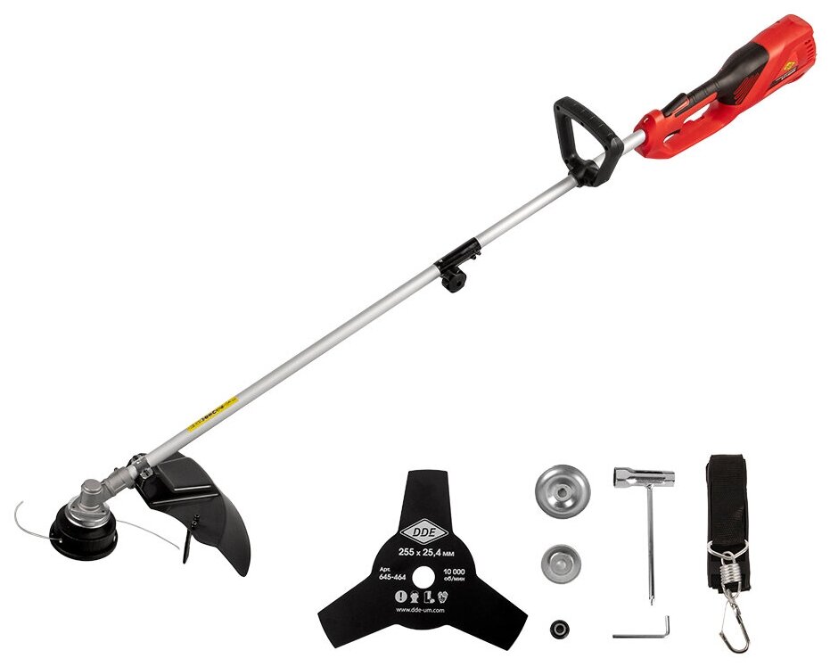 Электрический триммер DDE ЕТ1500R (1.5кВт, леска/нож, ширина скашивания 42/25.5см, 8000об/мин)