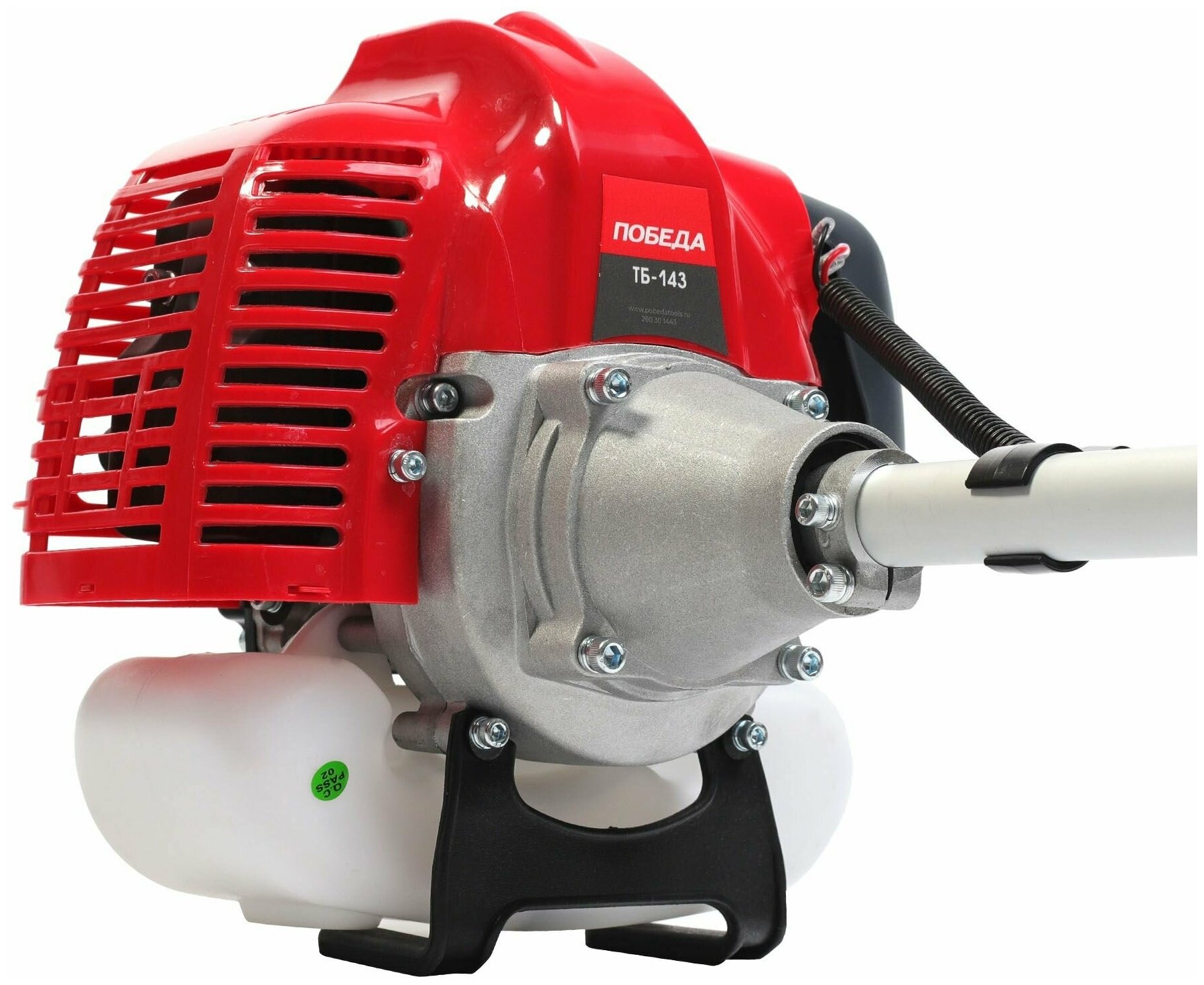 Триммер бензиновый Победа ТБ 143, раб. объем 43 сс, 2,5 л.с., велосипедная рукоятка, катушка с леской, 40 зуб., нож 255 мм / бензотриммер информация: