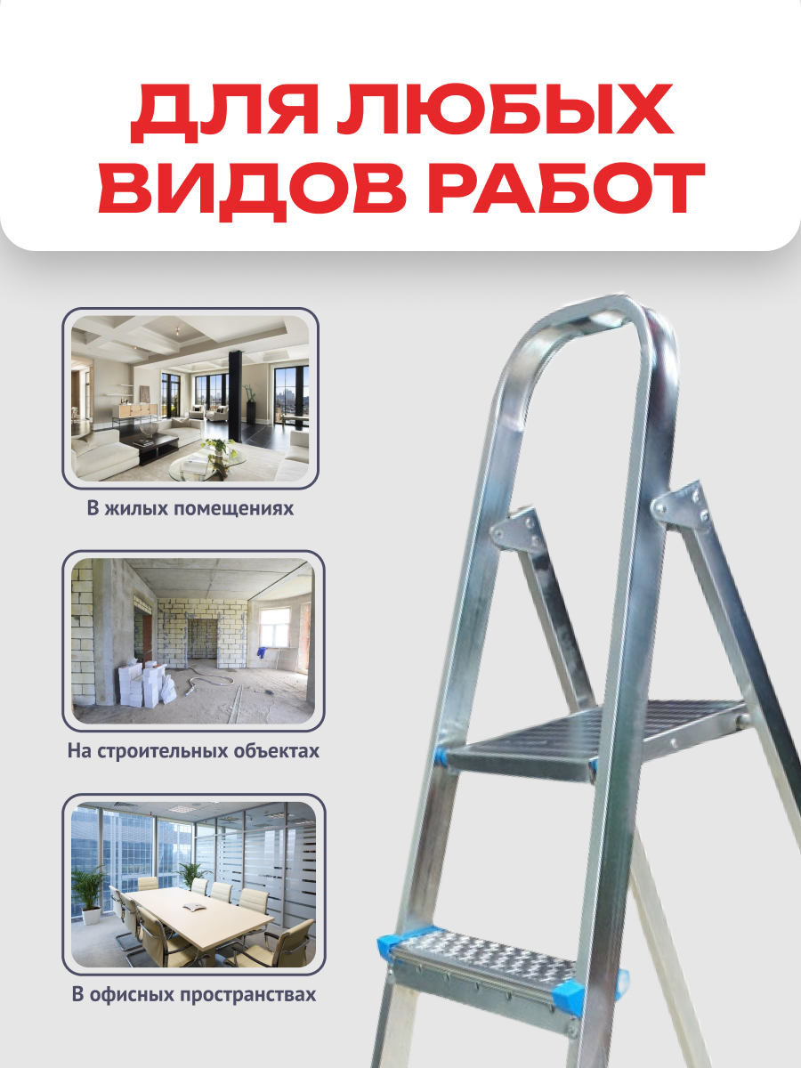 Стремянка алюминиевая Standers 4 ступени, максимальная нагрузка 150 кг