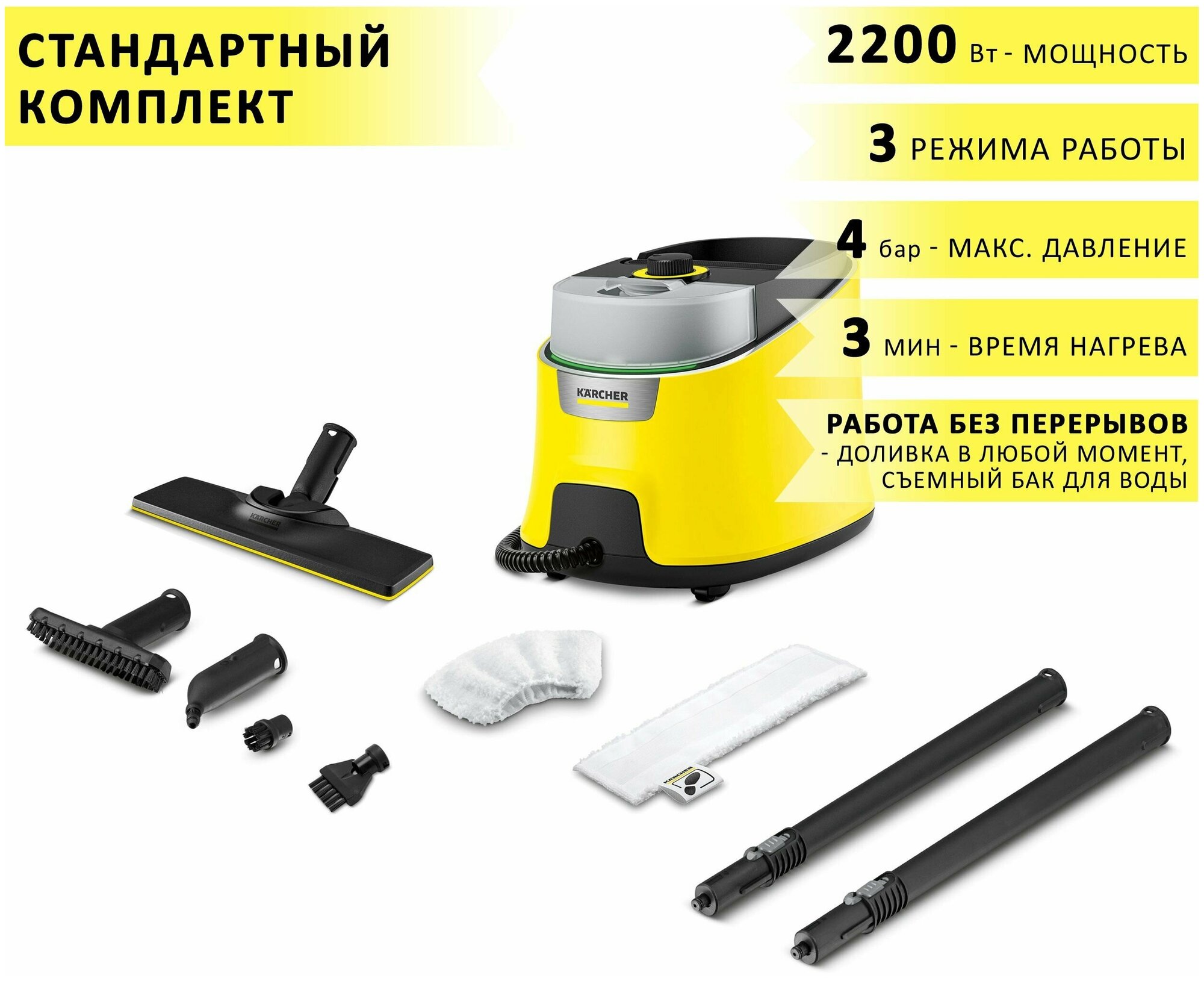 Пароочиститель напольный Karcher SC 4 Deluxe EasyFix желтый 1.513-260.0