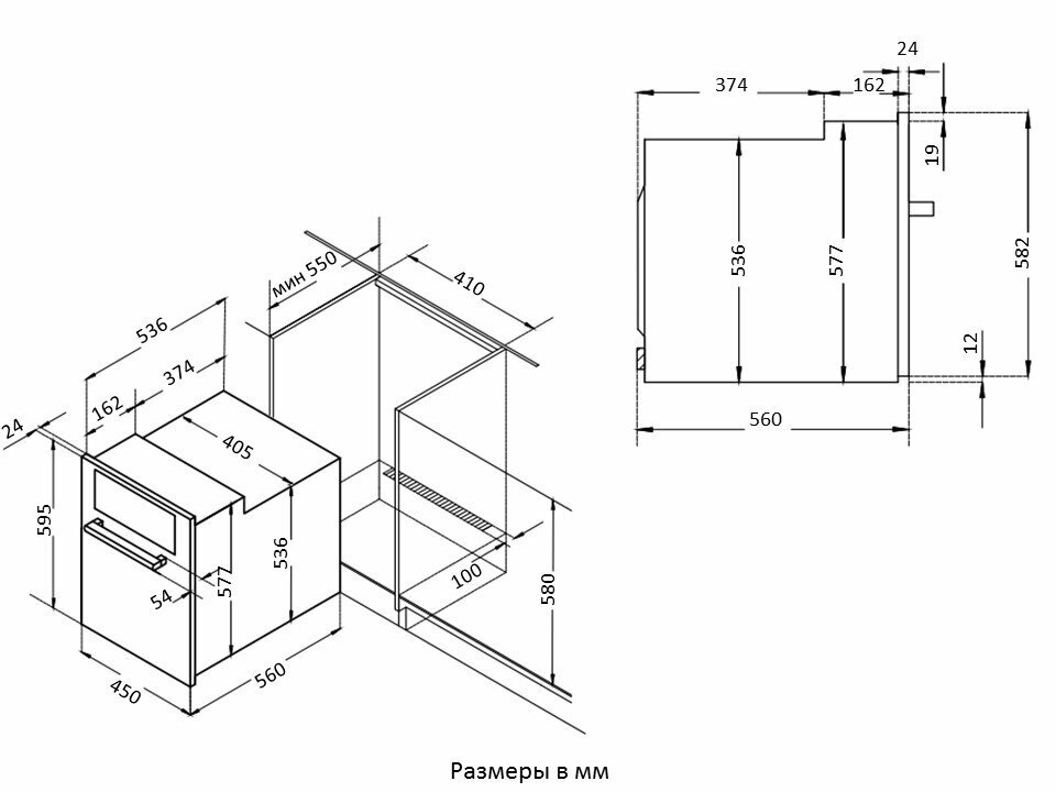 | Режимы нагрева | нижний нагрев, верхний нагрев, верхний нагрев + нижний нагрев, нижний нагрев + конвекция, гриль + конвекция, большой гриль, конвекция |