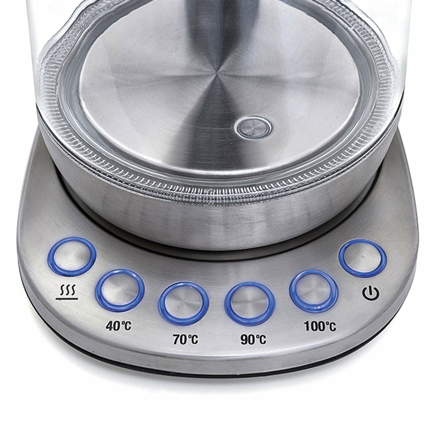 Чайник KITFORT КТ-616, 1,5 л, 2200 Вт, закрытый нагревевательный элемент, 4 режима нагрева, стекло, серебристый, KT-616