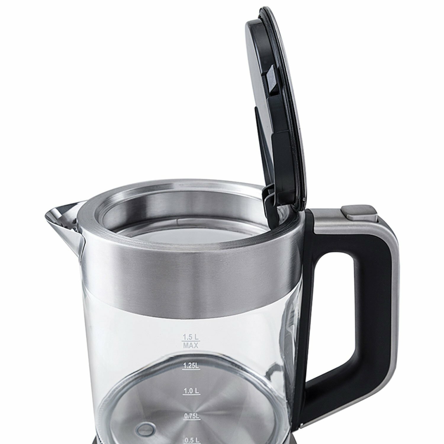 Чайник KITFORT КТ-616, 1,5 л, 2200 Вт, закрытый нагревательный элемент, терморегулятор, стекло, серебристый, KT-616