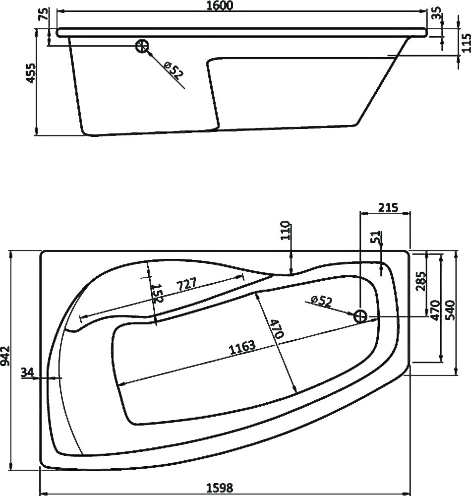 1.WH11.1.991 майорка XL 160х95 ванна асимметричная акриловая левосторонняя белая 23 389 ₽