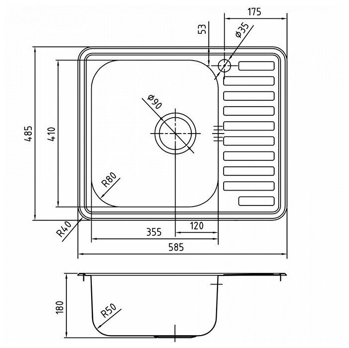 Мойка, нерж. сталь, полир, 585*485, Strit S, IDDIS, STR58PDi77